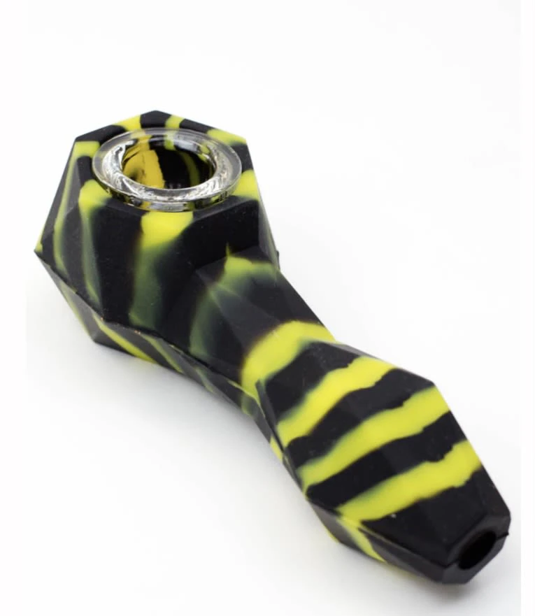 Multi colored Silicone hand pipe with glass bowl Black and yellow