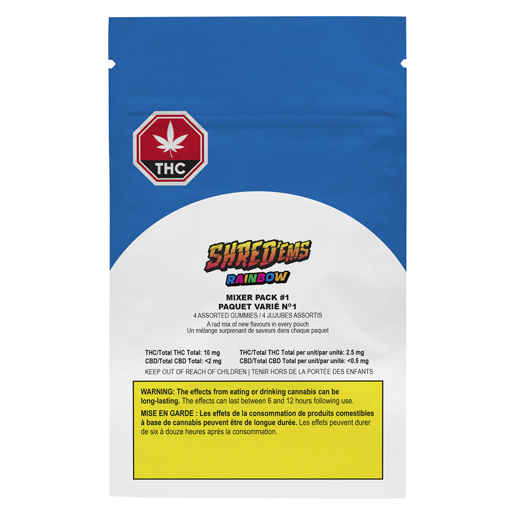 In each SHRED’ems Rainbow Mixer Pack you’ll find four new flavour concoctions randomly packed for a different combination each time. Try Goji Raspberry, Clementine Passionfruit, Blueberry Coconut and Kiwi Honeydew. Each is colour coded for your convenience. Each soft chew contains 2.5 mg THC.