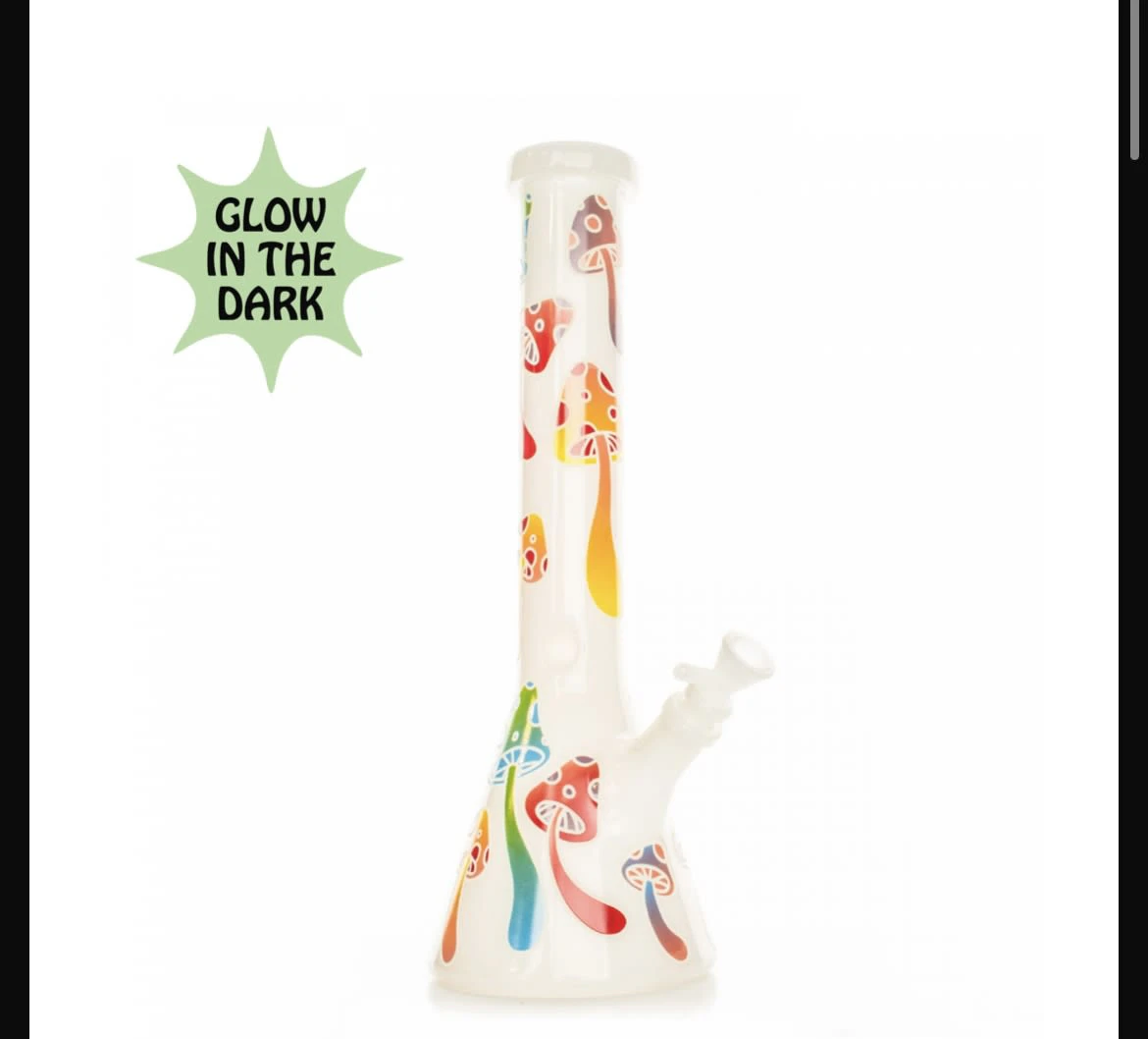 Red eye glass 15 inch tall white mushroom magic beaker base glow in the dark
