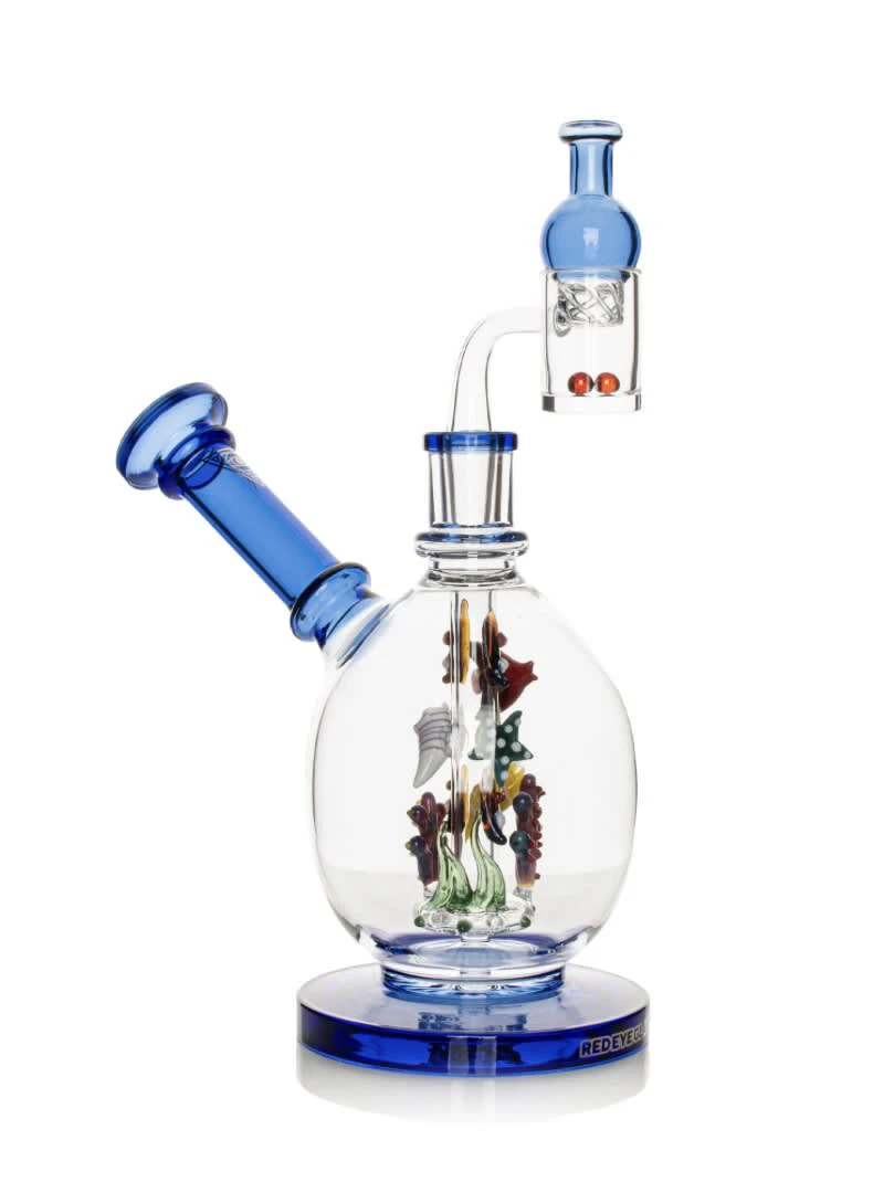 Red Eye Glass 6.5" Tall Sealife Concentrate Rig W/Whirlpool Cap & Pearls