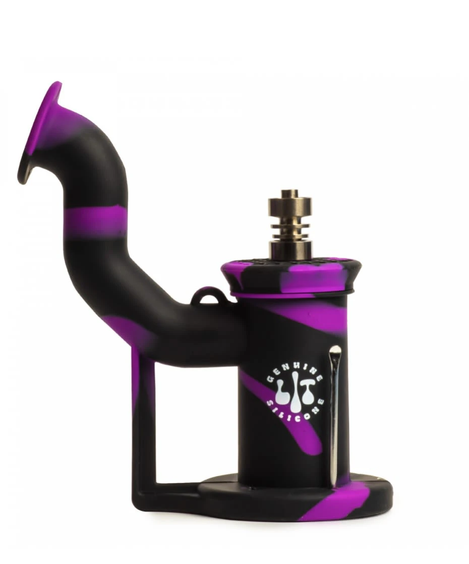 LIT Silicone Purple & Black Concentrate Bubbler W/Titanium Nail